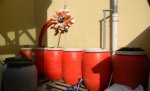 Le jardin compte 6 récupérateurs d’eau pluviale. Ils récupèrent l’eau du toit de la maison des associations, stockée dans des tonneaux en plastique. L’eau n’est pas filtrée, ni pompée. Les tonneaux fonctionnent en vases communiquants : Un tuyau muni d’un robinet relie la (...) -